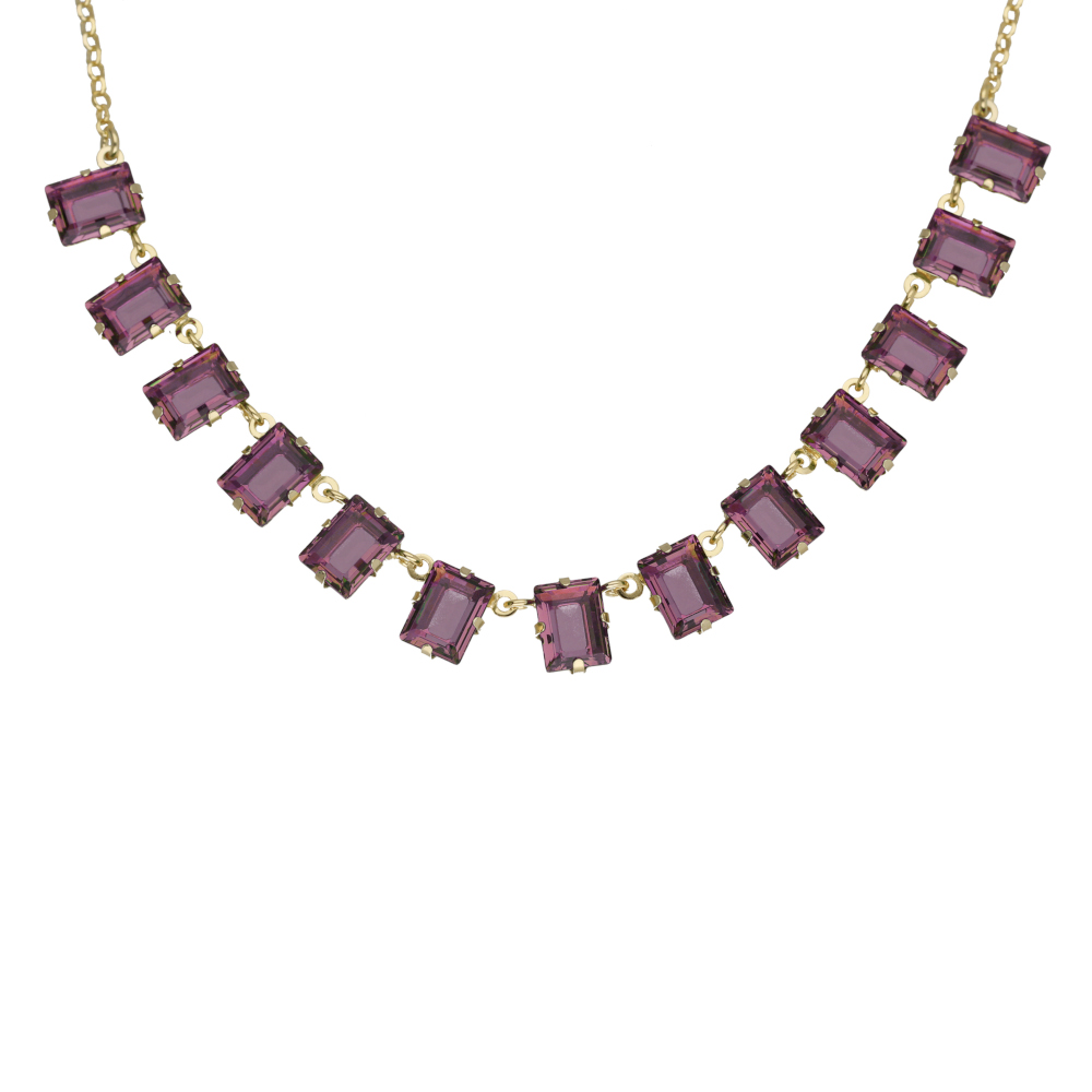 Κολιέ με πετρες ανοιχτού αμέθυστου Swarovski, σε κοπή emerald,από τη σειρά Brave, Victoria Cruz. Μία καθηλωτική επιλογή που δίνει χρώμα στις εμφανίσεις σας!