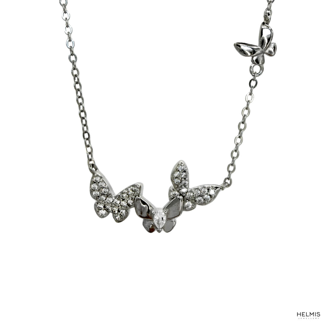 Ασημένιο κολιέ 925 με σχέδιο από πεταλούδες με λευκά ζιργκόν
