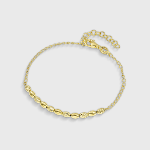 Βραχιόλι με ακουαμαρίνα και λευκά μαργαριτάρια γλυκού νερού Fresh Water Pearl διαμέτρου 8,0 x 10,0 χιλιοστών. Διαθέτει επιχρυσωμένα στοιχεία από ασήμι 925. Το βραχιόλι είναι ελαστικό και προσαρμόζεται εύκολα σε οποιοδήποτε χέρι.