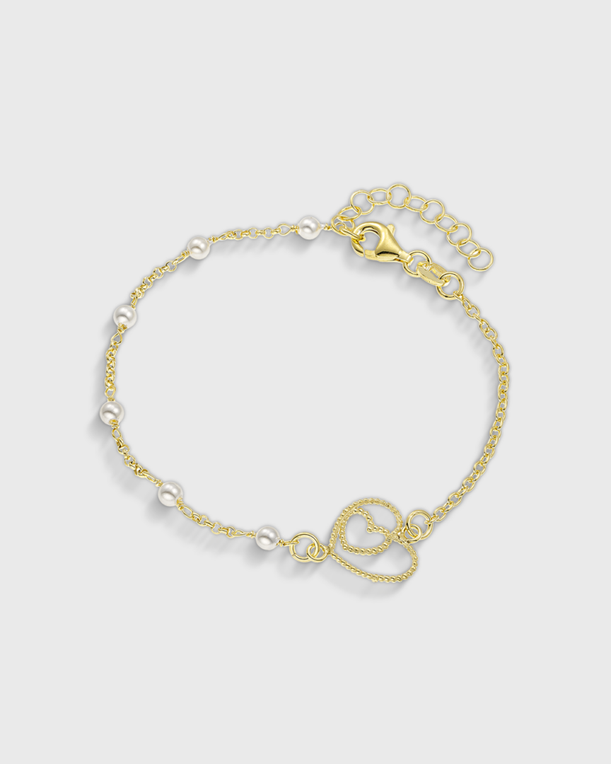 Βραχιόλι με καρδούλα και μαργαριτάρια, Vogue. Μία καθημερινή επιλογή που μπορεί να ολοκληρώνει την εμφάνισή σας! Το υλικό είναι ασήμι 925 με 18καρατια επιχρυσωμα