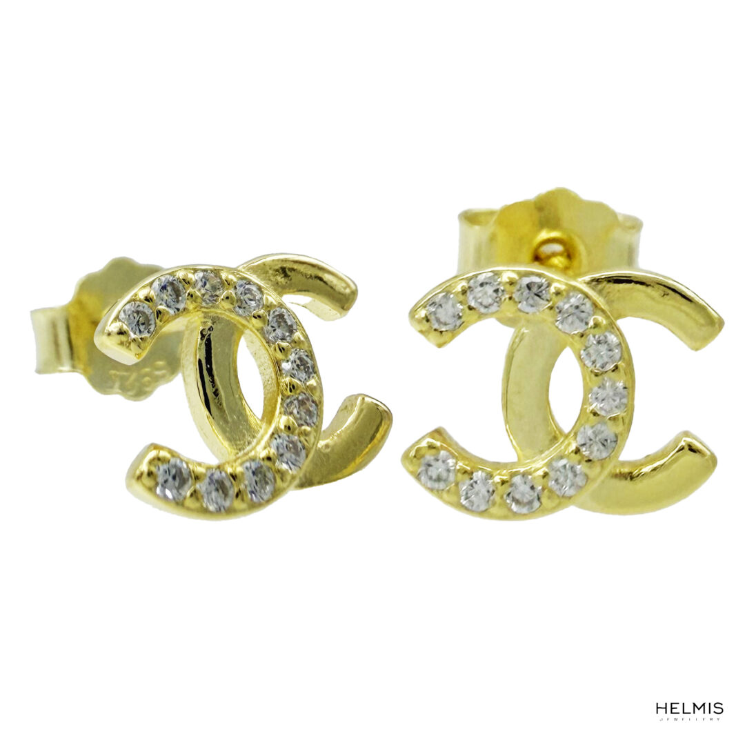 Ασημένια επιχρυσωμένα σκουλαρίκια 925 με σχέδιο από λευκές πέτρες. Μία όμορφη επιλογή που μπορείτε να φοράτε κάθε μέρα!