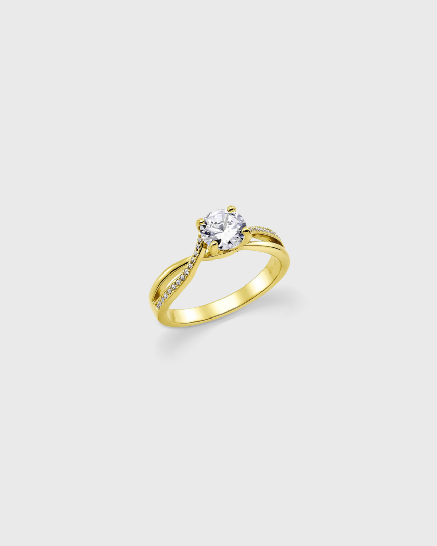 Μονόπετρο δαχτυλίδι με πέτρα σε κοπή μπριγιάν και γυαλιστερή επιφάνεια, από την εταιρεία Vogue. Το υλικό είναι ασήμι 925 με κίτρινο χρυσό επιμετάλλωση 18καρατίων.