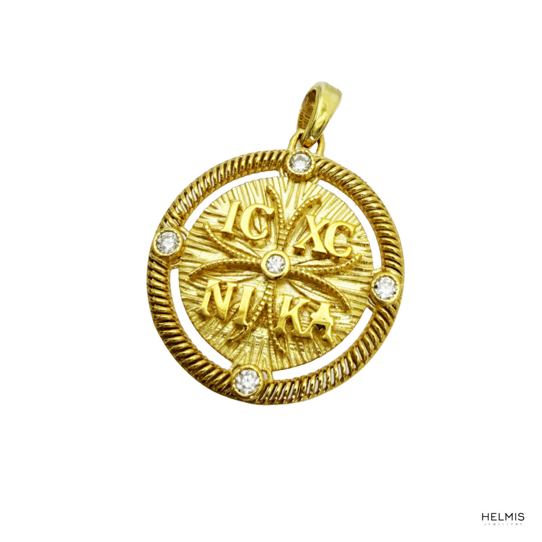 Χρυσό κωνσταντινάτο 9καρατίων σε στρογγυλό σχήμα.
