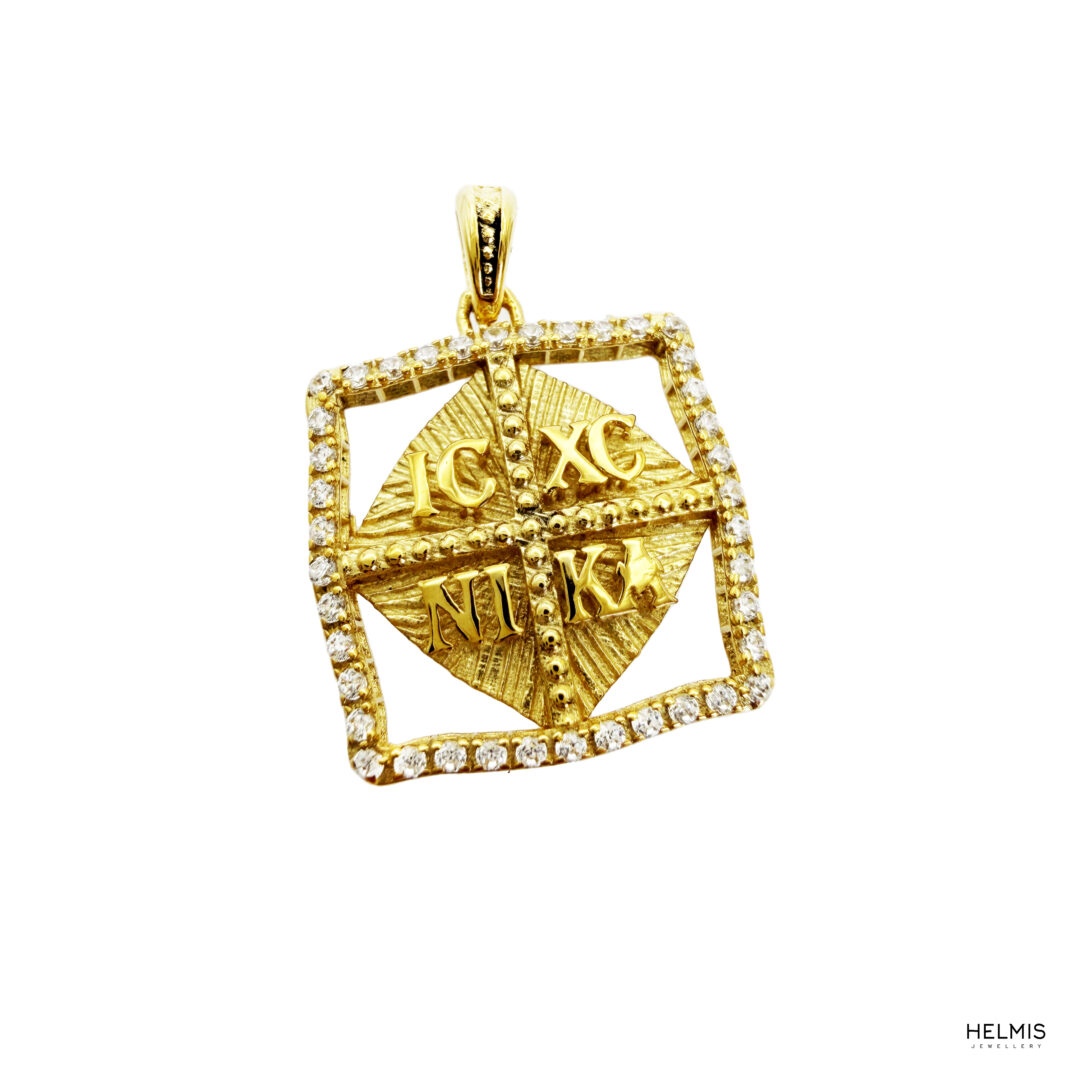 Χρυσό κωνσταντινάτο 9καρατίων σε τετράγωνο σχήμα που μπορείτε να το συνδυάσετε στο κολιέ σας.